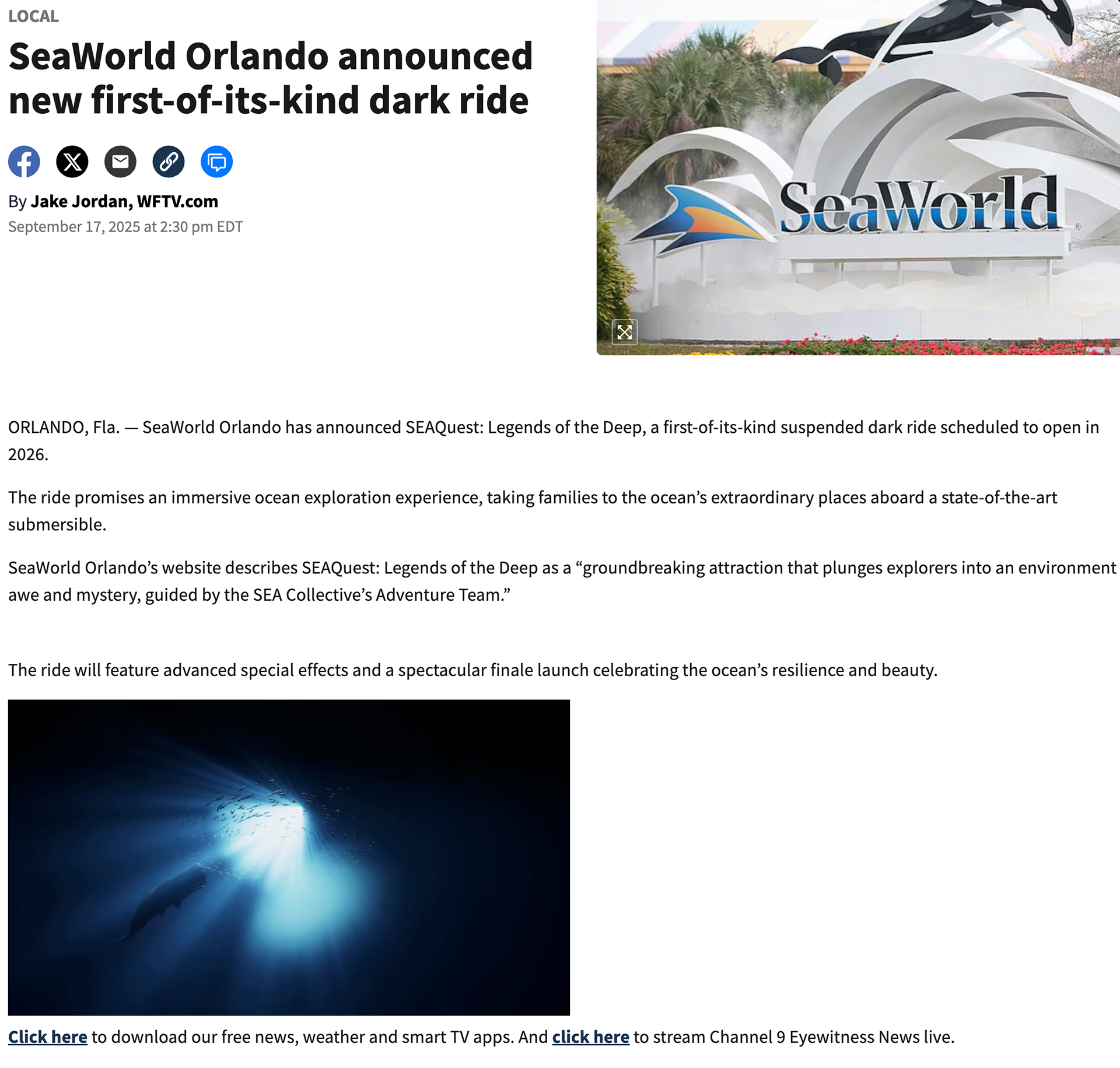 United Parks approached us to promote their new dark ride attraction, SEAQuest. They needed a cinematic teaser trailer and a suite of hero visuals that could generate excitement online, on social, and across digital platforms. The ask: deliver a bold, high-impact campaign that could capture the mystery and wonder of an underwater adventure - all within a tight production window.