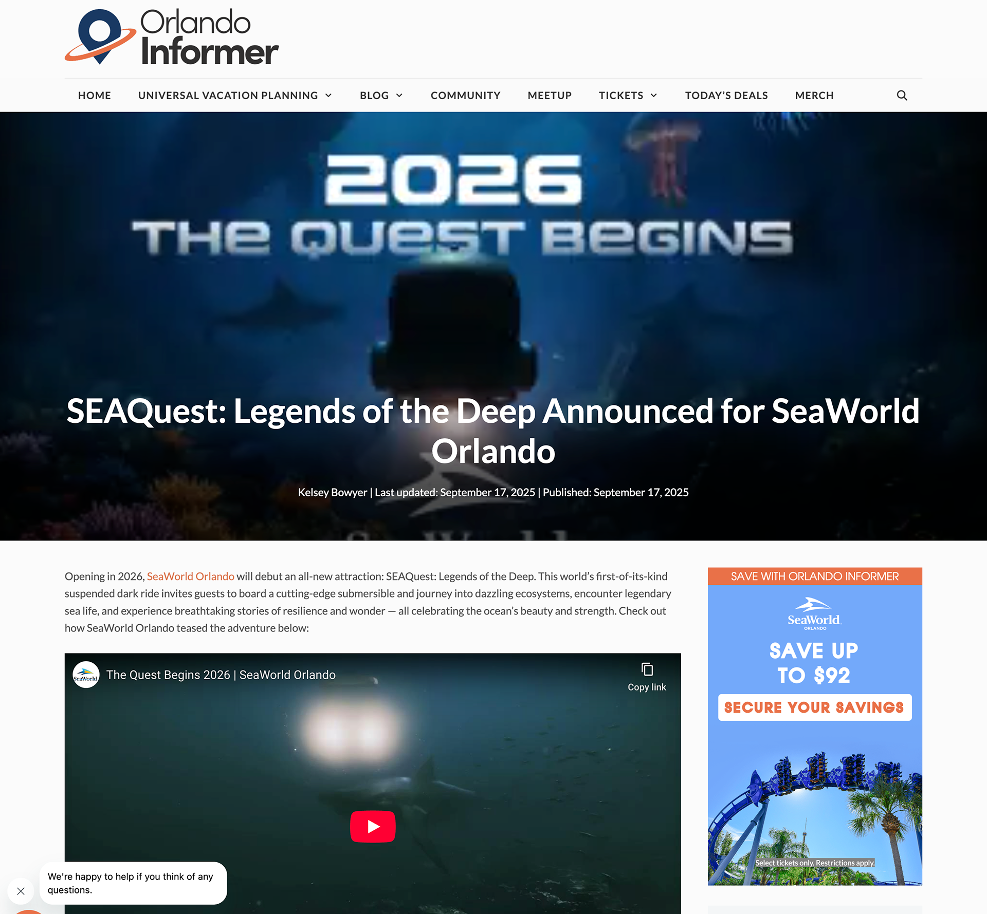 SEAWORLD ANNOUCEMENT PAGE VIA SEAWORLD.COM